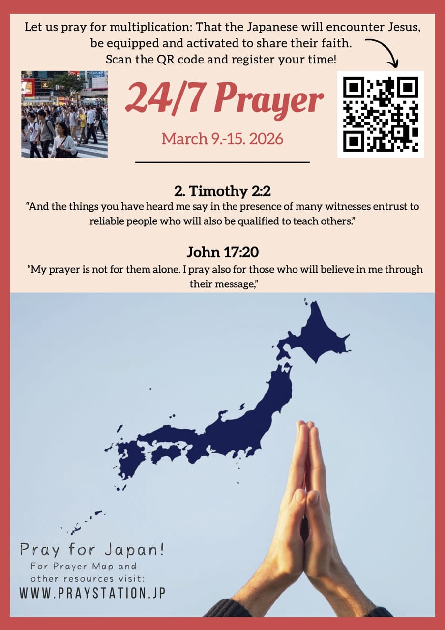 Let's spend a week praying for Nagoya and Japan! We're going to fill every hour of the calendar with prayer for Nagoya! You can pray from your house or at our prayer house in Nagoya. We may not have public prayer meetings, but you're more than welcome to hold your own and keep the prayers going!